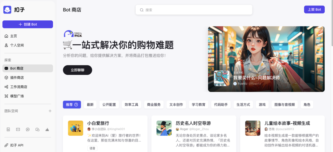 基于大语言模型能力,现阶段c端智能体更多是以对话类ai聊天机器人的形式出现,不管是个人用户自己开发的智能体,还是企业推出的相关应用产品,基本都是你问我答的形式。
